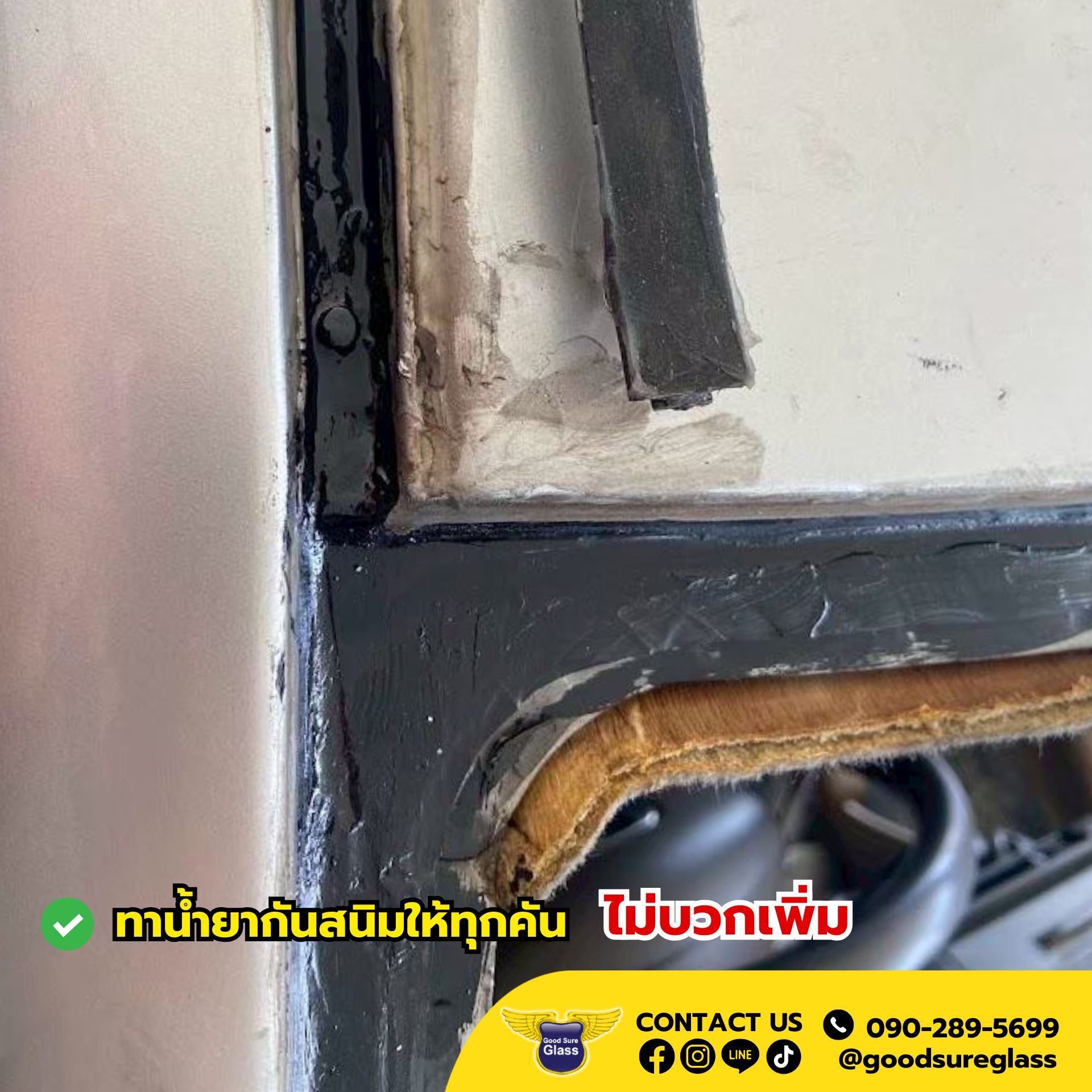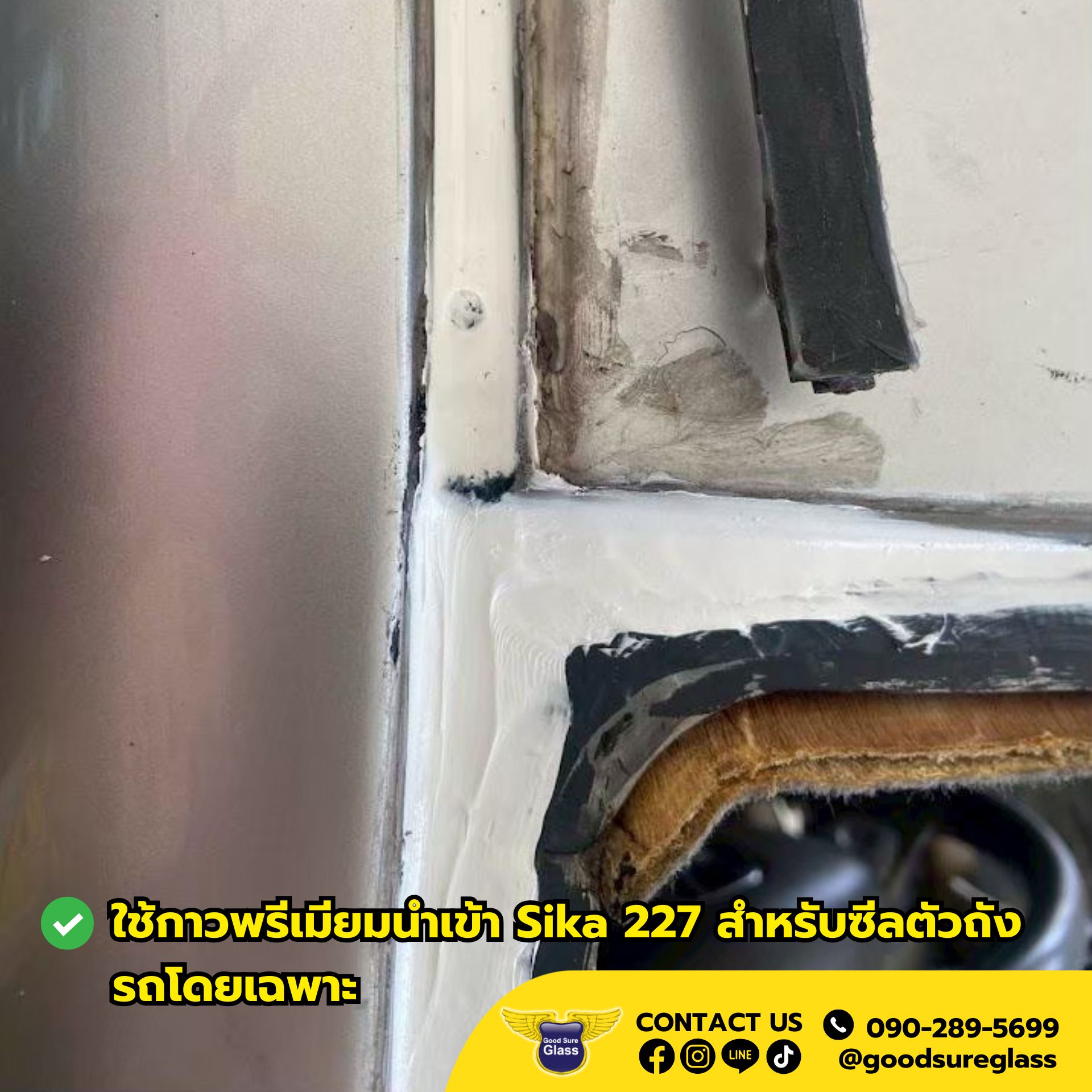 เราแก้ให้ตรงจุด ด้วยการซีลใหม่ด้วยกาว Sika 227 เกรดพรีเมียม สำหรับงานตัวถังโดยเฉพาะ