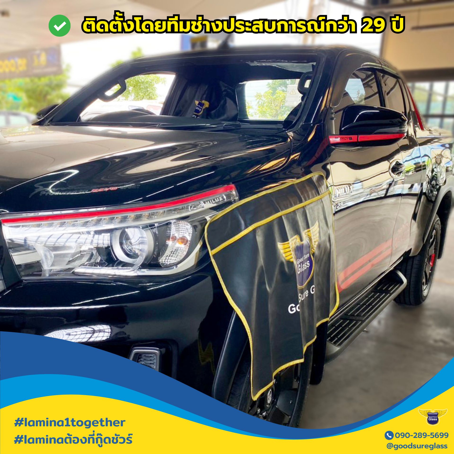TOYOTA REVO ใช้บริการติดตั้งกระจกพร้อมฟิล์ม Lamina